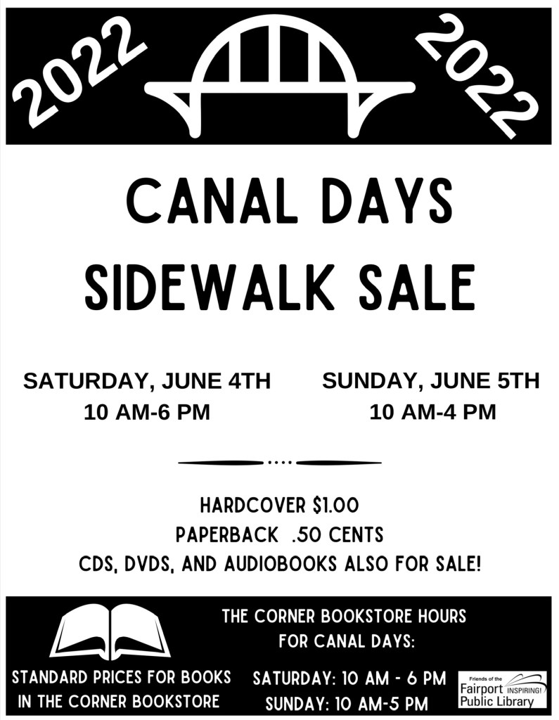 The Corner Bookstore will be open during Canal Days! Stop by on Saturday 6/4 (10AM-6PM) or Sunday 6/5 (10AM-4PM) and find your next great read!